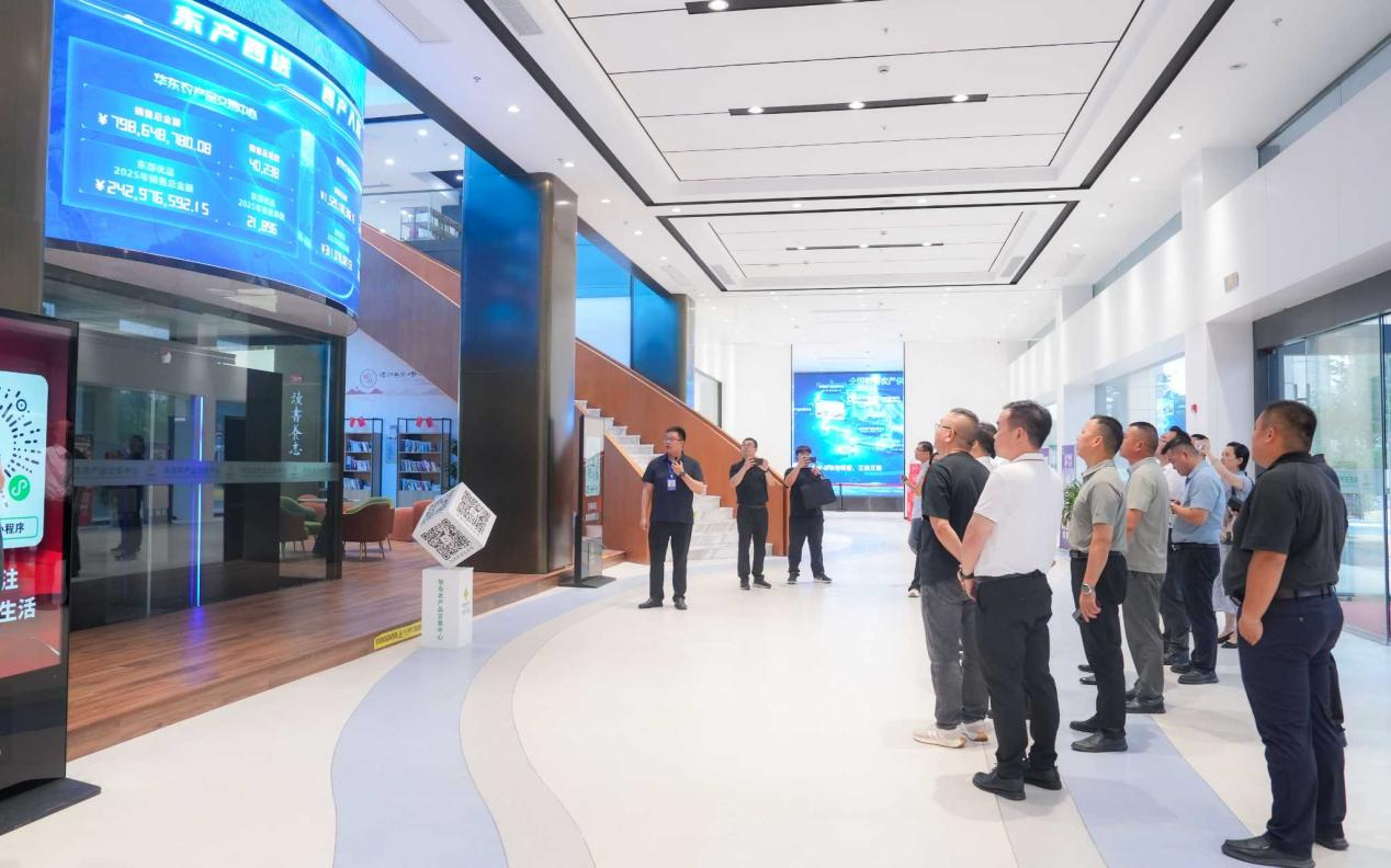 2025年9月17日,新疆維吾爾自治區(qū)供銷(xiāo)合作總社黨組書(shū)記、理事會(huì)主任張鈺祥,伊犁州供銷(xiāo)合作社黨委書(shū)記、監(jiān)事會(huì)主任秦嶺一行在鹽城市政府辦公室副主任施興華、江蘇省供銷(xiāo)合作總社發(fā)展規(guī)劃處副處長(zhǎng)王洋、鹽城供銷(xiāo)合作總社副主任沙附生的陪同下,蒞臨華東農(nóng)產(chǎn)品交易中心實(shí)地參觀調(diào)研,華東交易中心董事長(zhǎng)毛霖(兼新立訊科技集團(tuán)董事長(zhǎng))攜在家管理層熱情接待。