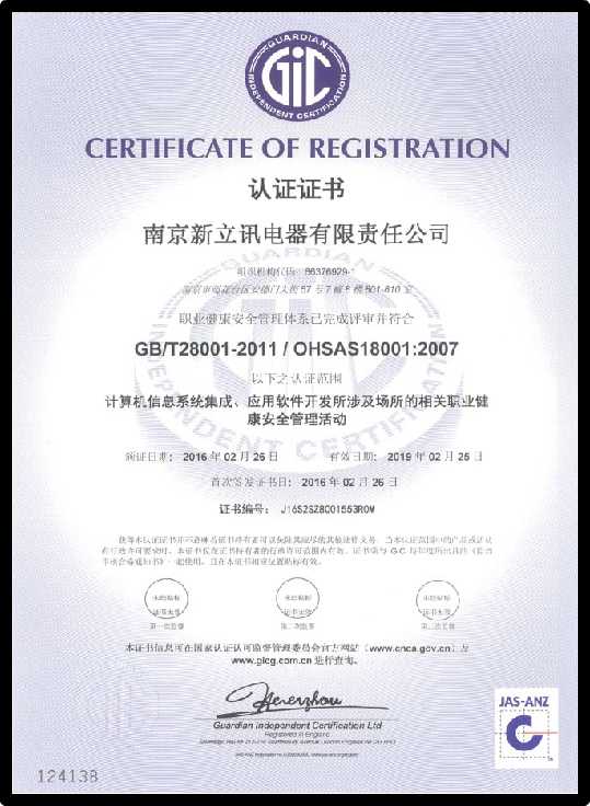 南京新立訊電器有限責(zé)任公司始終堅持標(biāo)準(zhǔn)化管理,對質(zhì)量、環(huán)境、安全等環(huán)節(jié)中的管理流程進行不斷完善,并通過有效運營,提高了全體員工的質(zhì)量與健康安全意識,也為進一步的市場開拓提供了強有力的支撐,提升了新立訊企業(yè)的形象及競爭力。